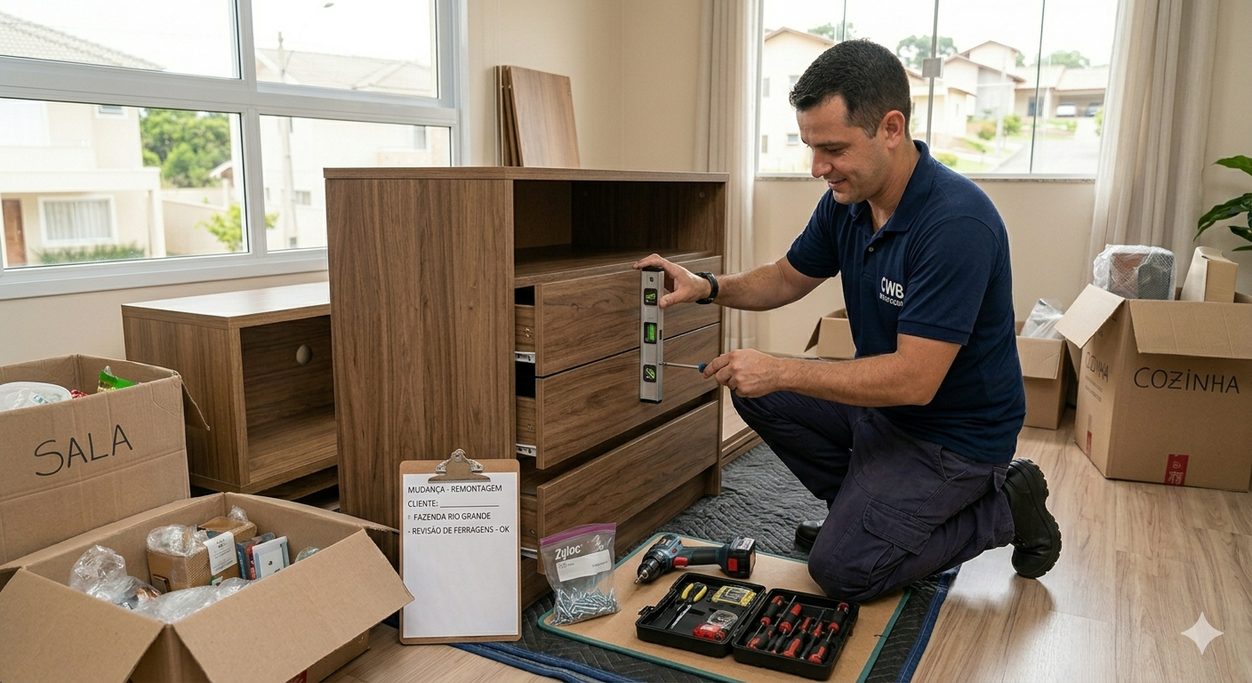 Um montador de móveis Fazenda Rio Grande experiente garante que cada item seja remontado com segurança e funcionalidade.